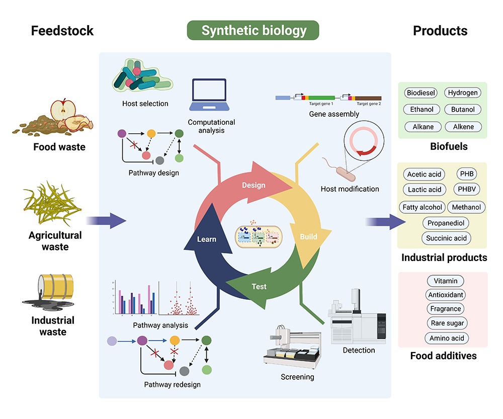 Synthetic biology projects in our group employ state-of-the-art technology to construct engineered cells and new metabolic pathways via metabolic engineering approach for turning low value feedstock such as sugar, CO2 and bio-wastes such as lignocellulosic biomass and triglyceride into value-added products. Recently, we have developed a promising cell prototype which can significantly enhance the amount of biohydrogen production. We are collaborating with leading industrial partners to develop cell prototypes which can be used in industrial scale production of valuable compounds from low value feedstocks. We believe that technology development in this research area and partnership with private sector are important for making industrial processes more sustainable and mitigating environmental damage and climate change.